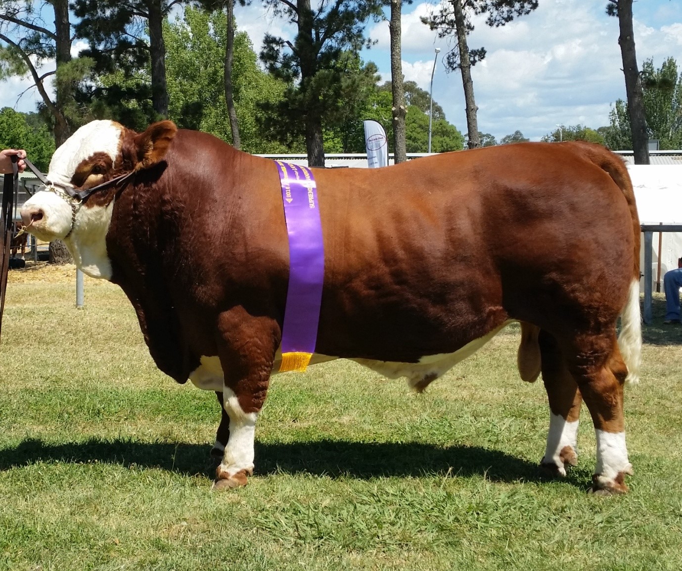 JJF is out of one of our favourite cows Tennysonvale Fifi and by the AI bull Steinmader. He was impressive from the day he was born. His Mum did a fantastic job on him and considering she was just a heifer she produced an early maturing heavily muscled bull with a very docile nature. He was a certainty for the 2014 show team and at his first showing at Canberra Royal and at just 10 months of age, he was the Grand Champion Fleckvieh bull and then went onto being placed 2nd in the Interbreed. A fantastic feat considering he was just 10 months. To add to all this he is also Homo Poll.